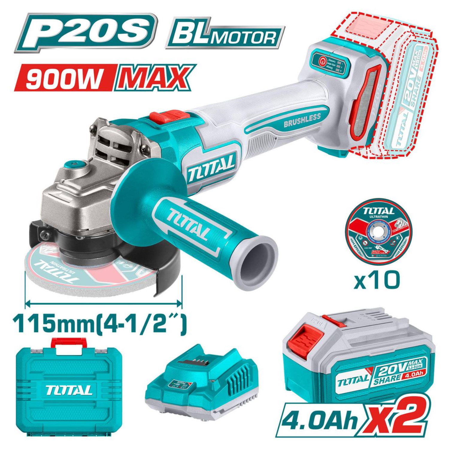 Total Cordless Angle Grinder 20V Model TAGLI211542