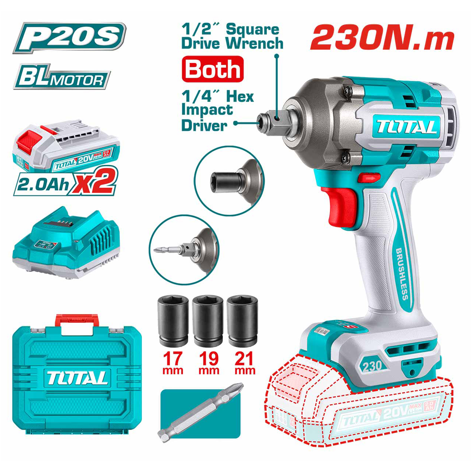 بکس شارژی 230 نیوتن 20 ولت Total مدل TIWLI20236