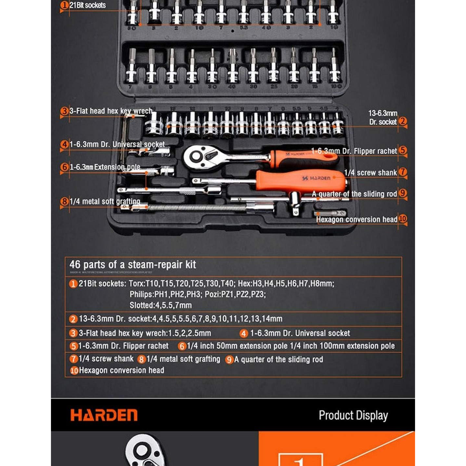 ست 46 پارچه بکس و آچار 1.4 اینچ هاردن مدل 510346